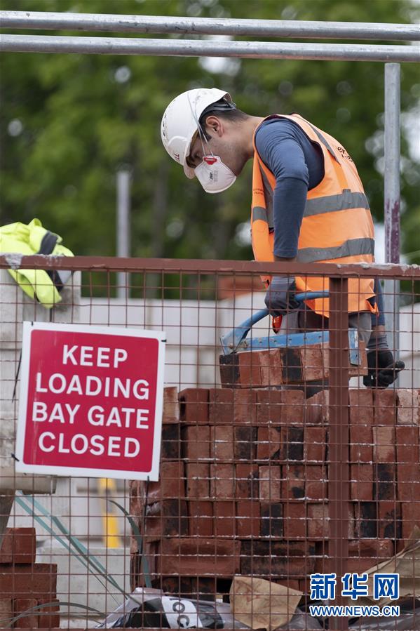 5月13日,建筑工人戴着口罩在英国曼彻斯特一处工地上忙碌。新华社发(乔恩·休珀摄)
