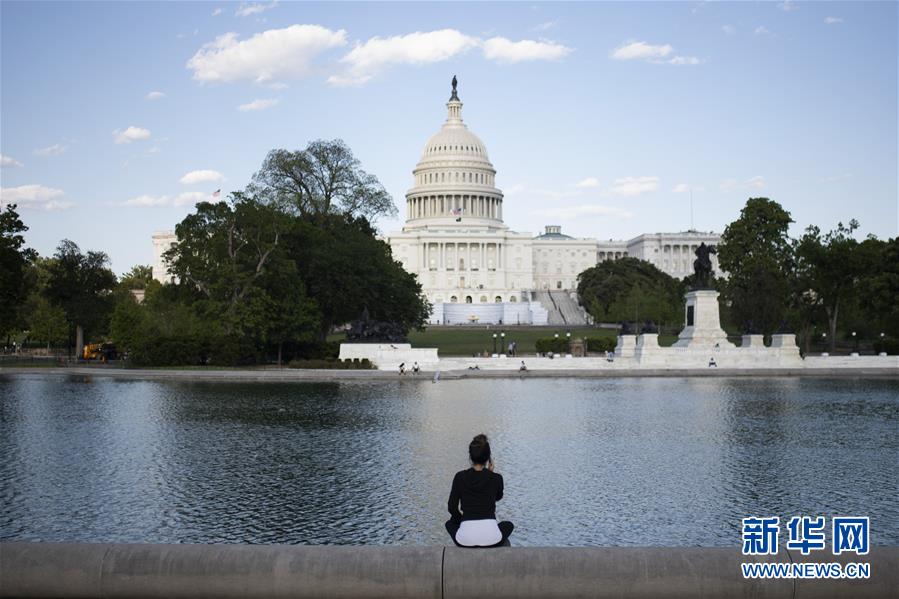 5月13日,一名女子美国华盛顿国会大厦附近休息。 新华社记者 刘杰 摄