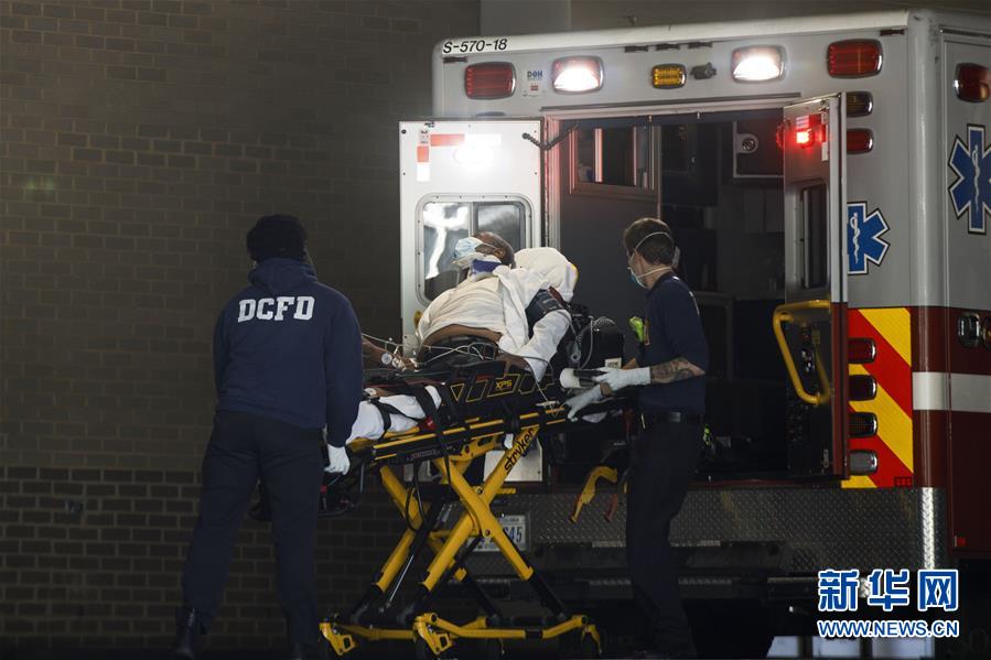 5月13日,在美国华盛顿的乔治·华盛顿大学医院,工作人员运送患者。 新华社发(沈霆摄)