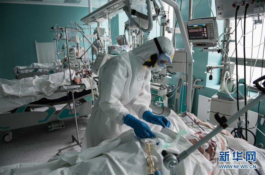 5月14日,在俄罗斯首都莫斯科一家医院的重症监护室,医护人员护理新冠患者。 据俄罗斯防疫指挥部14日消息,俄过去24小时新增新冠确诊病例9974例,累计确诊252245例。这是自5月2日以来,俄单日新增病例数首次低于1万例。 新华社/卫星社