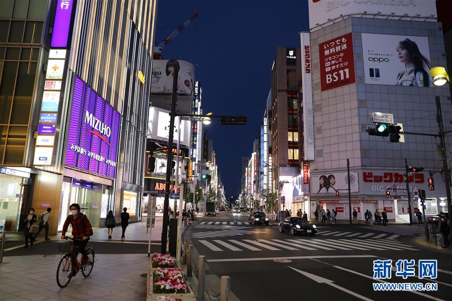 5月14日,在日本东京,街道上行人稀少。 日本首相安倍晋三14日宣布,解除除东京都、大阪府等8个都道府县之外的39个县的紧急状态。这是日本4月7日宣布紧急状态、4月16日将紧急状态范围扩大到全国后首次宣布解除紧急状态。 新华社记者 杜潇逸 摄