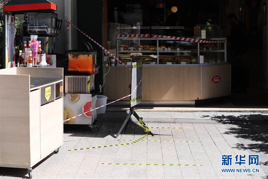 5月15日,在法国巴黎,一家面包店用胶条提醒人们保持社交距离。 法国卫生总署15日发表新闻公报说,法国新冠死亡病例升至27529例,在过去24小时内增加104例。法国从3月17日起实施“禁足令”,要求民众“最大限度”减少出行并避免与外界接触。5月11日,法国正式解除近两个月的“禁足令”。 新华社记者 高静 摄