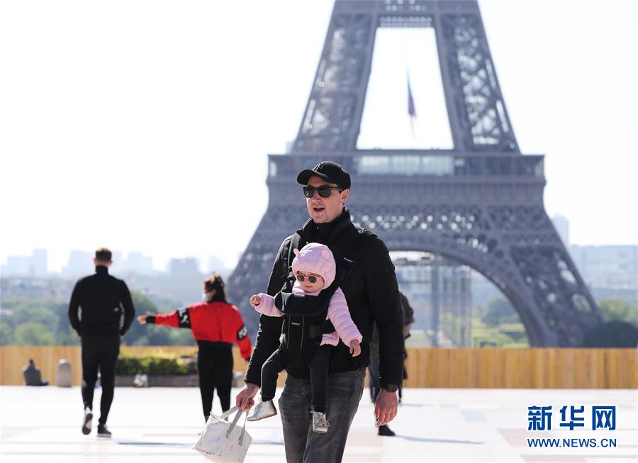 5月15日,一名男子在法国巴黎埃菲尔铁塔附近的特罗卡德罗广场 “遛娃”。 法国卫生总署15日发表新闻公报说,法国新冠死亡病例升至27529例,在过去24小时内增加104例。法国从3月17日起实施“禁足令”,要求民众“最大限度”减少出行并避免与外界接触。5月11日,法国正式解除近两个月的“禁足令”。 新华社记者 高静 摄