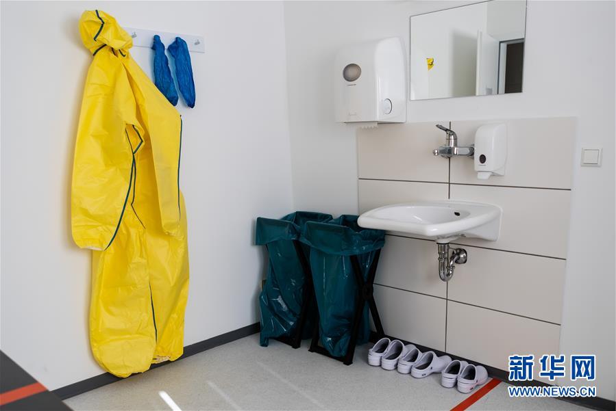 这是5月15日在德国首都柏林拍摄的为无家可归者开设的新冠隔离站房间一角。 德国首个为无家可归者开设的新冠隔离站自5月13日起在柏林启用。该隔离站共能容纳16人。 新华社发(张平摄)