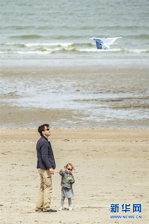 5月16日,在法国北部城市敦刻尔克,人们在海边散步。 16日,法国北部部分海滩在采取卫生防疫措施的前提下重新对公众开放。 新华社发(塞巴斯蒂安·库尔吉 摄)