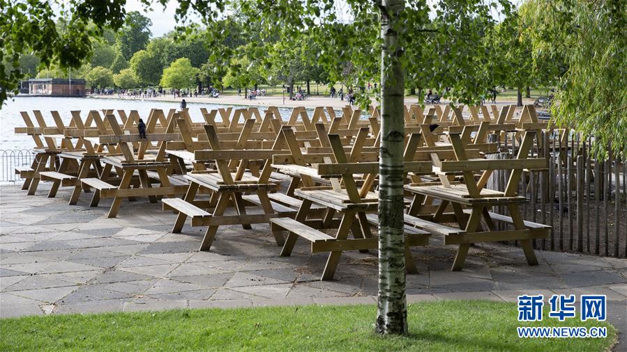 这是5月16日在英国伦敦拍摄的公园内的一家关闭的餐厅。 随着新冠疫情防控取得进展,英国政府日前公布“解封路线图”,开始逐步放松管控措施,谨慎推动复工复产。5月16日是“路线图”公布后的首个周末,不少市民外出休闲。 新华社记者 韩岩 摄