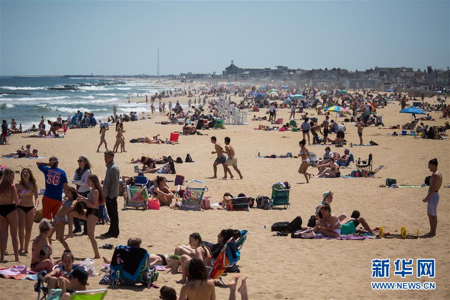 5月16日,人们在美国新泽西州贝尔马海滩享受阳光。 新华社发(郭克摄)