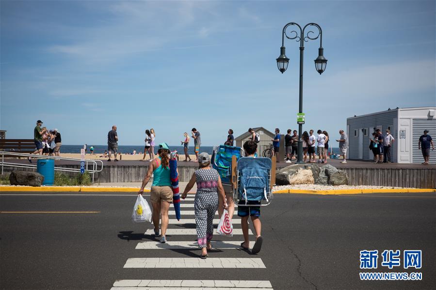 5月16日,人们走向美国新泽西州贝尔马海滩。 新华社发(郭克摄)