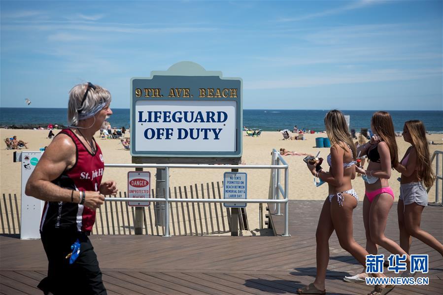 5月16日,人们在美国新泽西州贝尔马海滩享受阳光。 新华社发(郭克摄)