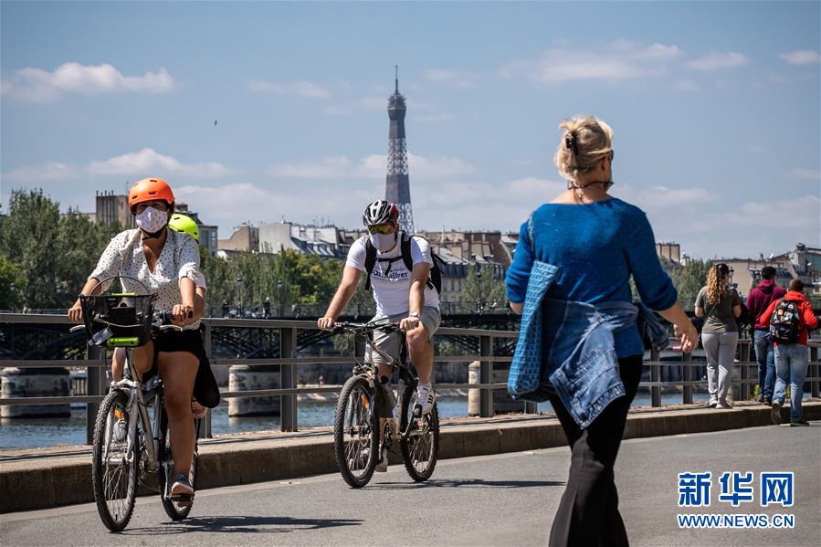 5月17日,在法国巴黎,人们在塞纳河畔骑行。 法国卫生总署17日发表新闻公报说,法国新冠死亡病例升至28108例,在过去24小时内增加483例。法国自5月11日起逐步解封。 新华社发(奥雷利安·莫里萨尔摄)