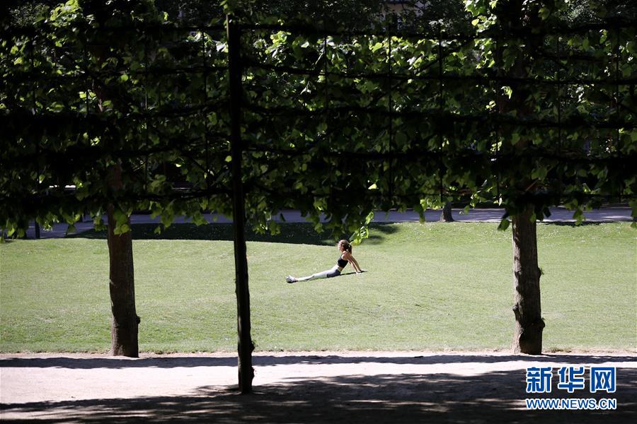 5月18日,在比利时布鲁塞尔,一名女子在草地上晒太阳。 从18日开始,比利时开启第二阶段“解封”,小学和中学将逐步复课,理发店、图书馆、博物馆和动物园均可重新开放。 新华社记者 张铖 摄