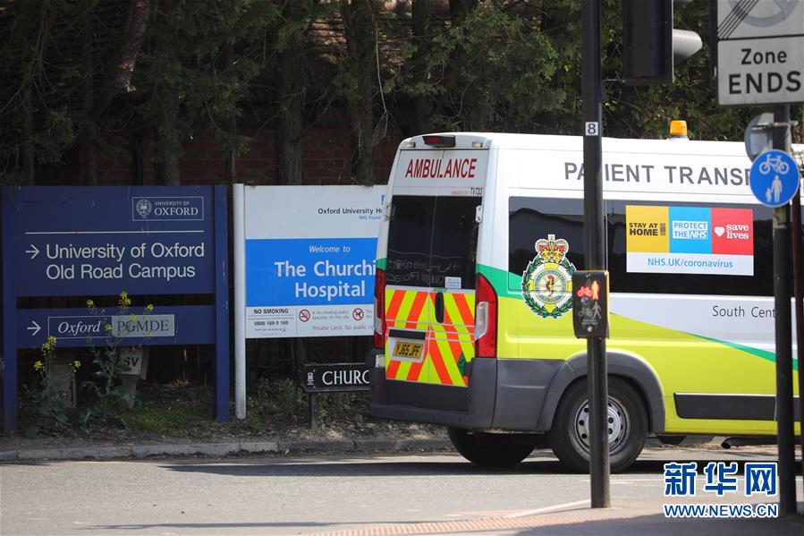 4月24日,在英国牛津,一辆救护车驶入通往牛津大学詹纳研究所的丘吉尔路。新华社发(蒂姆·爱尔兰摄)