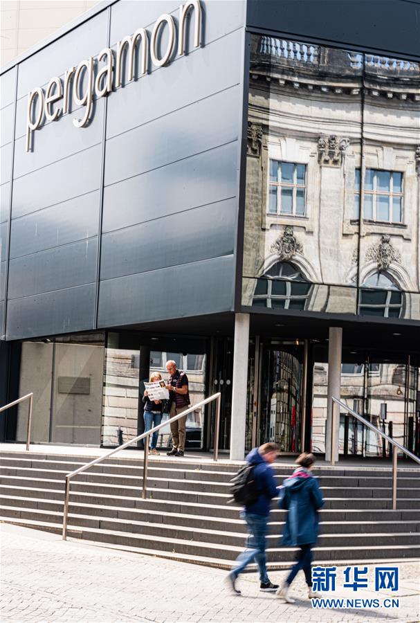 这是5月18日在德国首都柏林拍摄的佩加蒙博物馆前的行人。 5月18日是一年一度的国际博物馆日。德国的博物馆于5月初在满足卫生、限流等条件下恢复开放。 新华社发(张平摄)