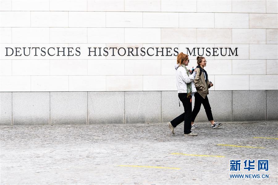 5月18日,在德国首都柏林,两名女子准备进入德国历史博物馆参观。 5月18日是一年一度的国际博物馆日。德国的博物馆于5月初在满足卫生、限流等条件下恢复开放。 新华社发(张平摄)