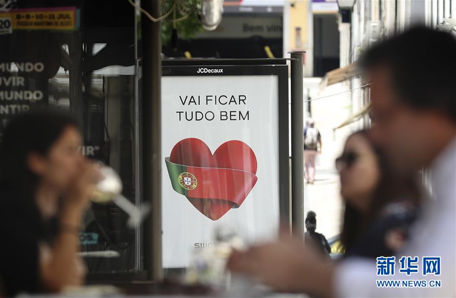5月18日,葡萄牙里斯本的一块广告牌上写着“一切都会好起来”。新华社发(佩德罗·菲乌萨摄)