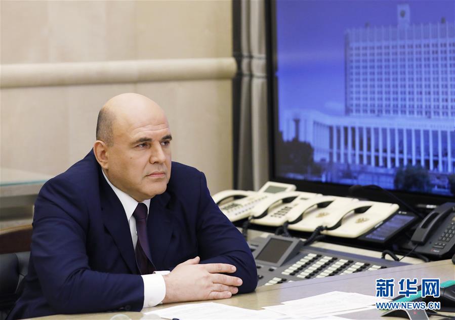5月19日,在俄罗斯首都莫斯科,俄罗斯总理米舒斯京出席视频会议。 新华社/卫星社