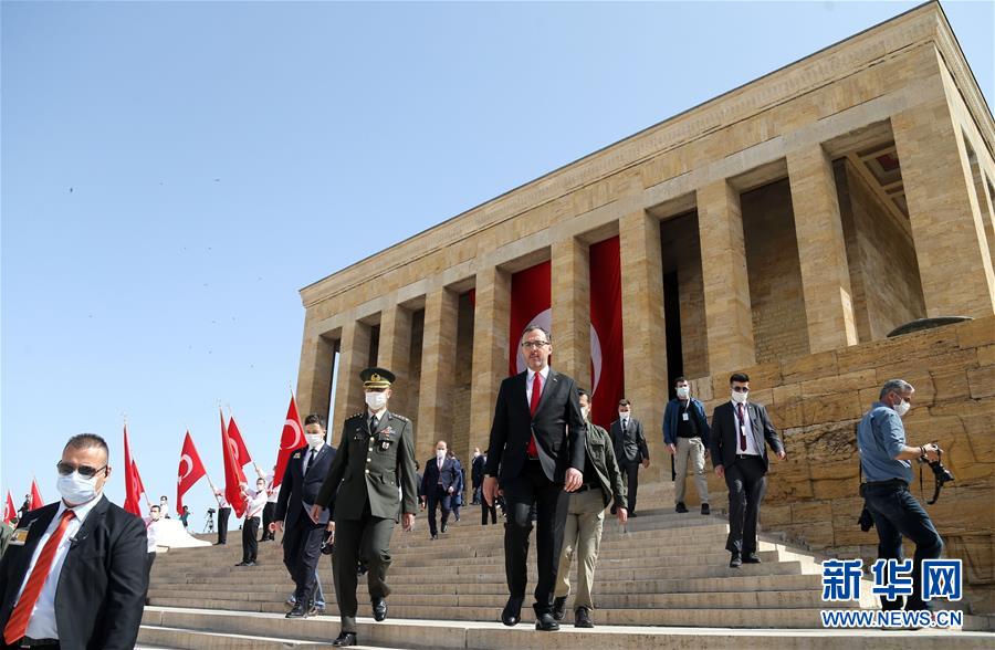 5月19日,在土耳其首都安卡拉,土耳其青年和体育部长卡萨普奥卢(中)在国父陵参加纪念活动后离开。 1919年5月19日,土耳其国父穆斯塔法·凯末尔·阿塔图尔克乘船抵达萨姆松,发起抵抗西方列强的军事斗争,这一天被视为土耳其独立战争的起点和土现代史的开端。 新华社发(穆斯塔法·卡亚摄)