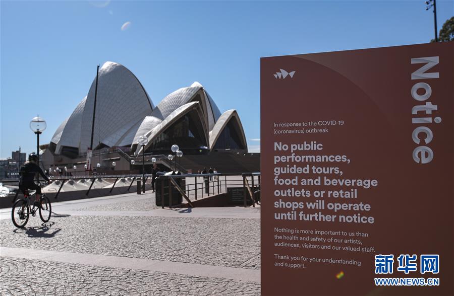 这是5月20日拍摄的澳大利亚悉尼歌剧院前竖立的防疫宣传牌。 日前,澳大利亚政府公布了三阶段放松疫情防控“路线图”。目前澳各州进入到第一阶段,公共交通、餐饮场所和州内旅行有条件恢复。 新华社记者 白雪飞 摄