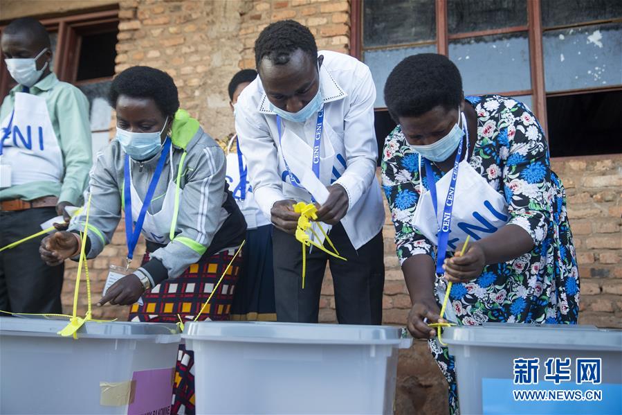5月20日,在布隆迪中部的基特加省一处投票站,布隆迪国家独立选举委员会的工作人员在大选开始前做准备工作。 中非国家布隆迪20日举行总统、国民议会和地方选举。 新华社发(埃夫拉尔·恩根达库马纳摄)