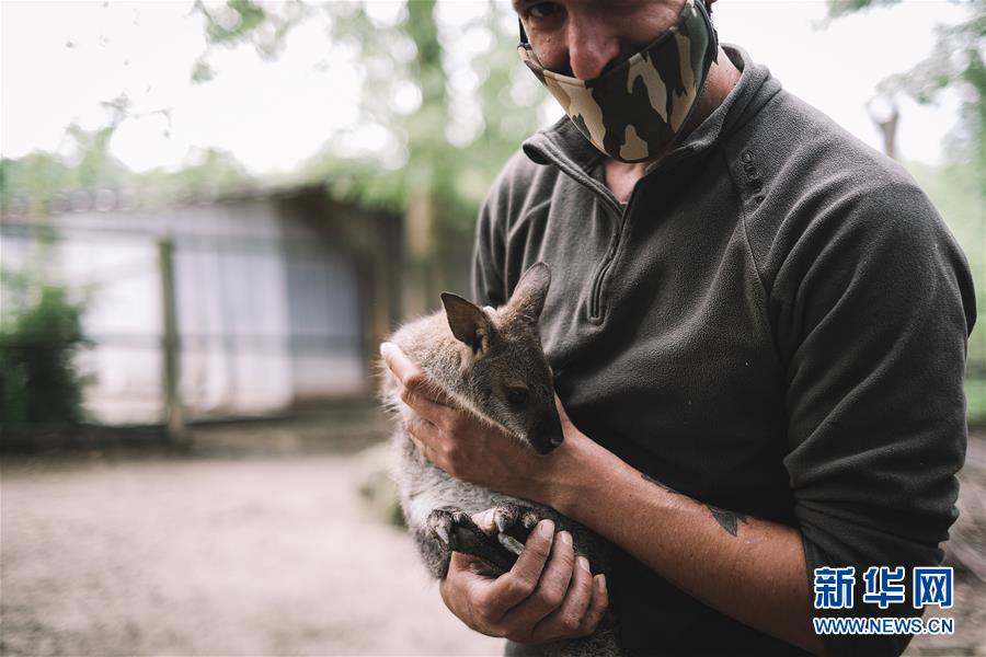 5月20日,在意大利穆拉扎诺的朗格野生动物园,工作人员抱起一只小袋鼠。 意大利穆拉扎诺的朗格野生动物园自今年3月起因新冠疫情关闭,至今未对公众开放。疫情期间,动物园向社会求助,希望公众特别是食品商人和餐馆老板,能够捐助多余的水果、蔬菜、肉类、干面包等食物给动物们。 新华社发(费德里科·塔尔迪托摄)