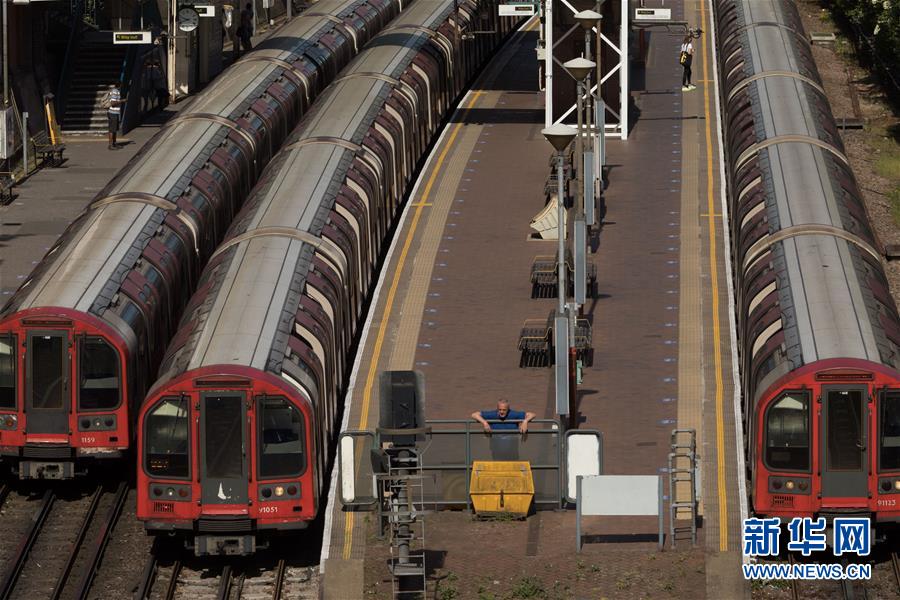 5月20日,在英国伦敦,一名工作人员站在站台上。 英国国家统计局5月19日公布的数据显示,英国4月份申请失业救济的人数环比跳涨69.1%至1996年以来最高水平。 新华社发(蒂姆·爱尔兰摄)