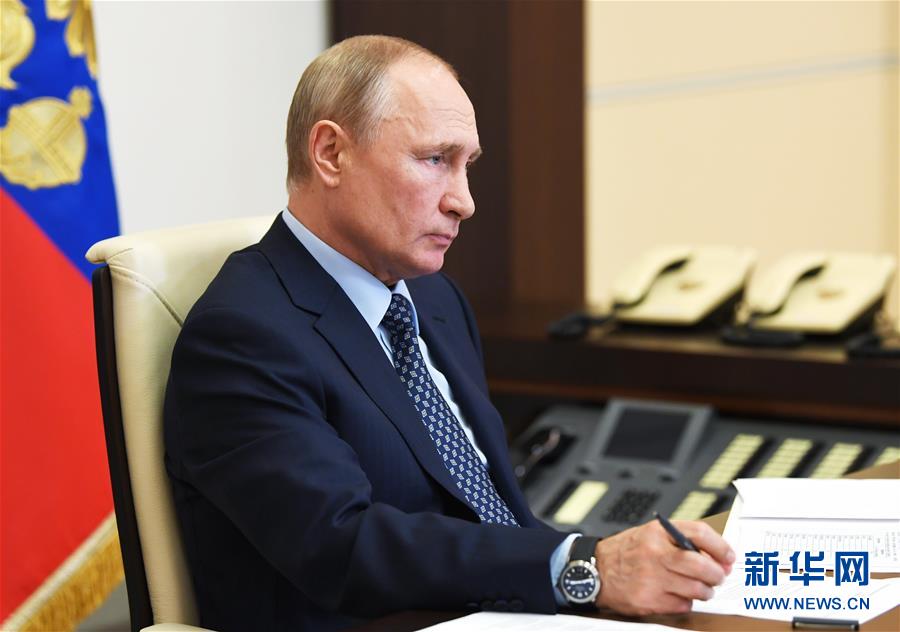 5月22日,在位于俄罗斯莫斯科州的新奥加廖沃总统官邸,俄总统普京主持防控新冠疫情相关会议。 新华社/卫星社