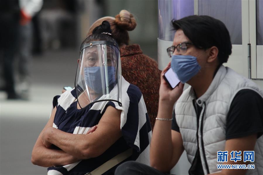 5月22日,在墨西哥首都墨西哥城国际机场,市民戴口罩出行。 墨西哥卫生部22日宣布,该国新增确诊病例2960例,累计确诊62527例;新增死亡病例479例,累计死亡6989例。 新华社发(弗朗西斯科·卡涅多摄)