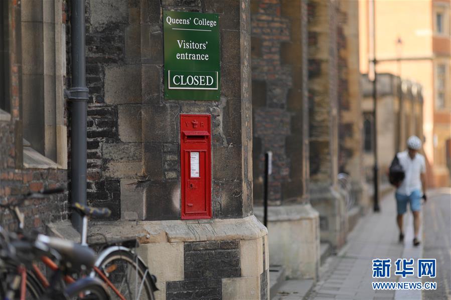 这是5月22日在英国剑桥大学拍摄的王后学院停止游客参观的通知。 日前,出于防控新冠疫情需要,英国剑桥大学宣布计划取消2020/2021学年大课的面授,并采用线上教学模式进行授课。 新华社发(蒂姆·爱尔兰摄)