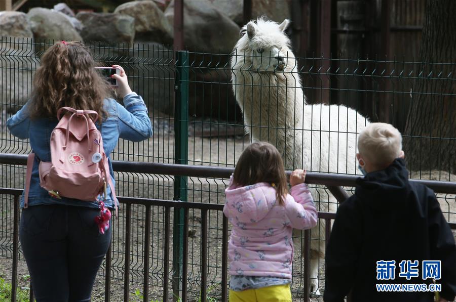 5月23日,在乌克兰基辅,游客在动物园观看羊驼。新华社发(谢尔盖·斯塔拉斯坚科摄)