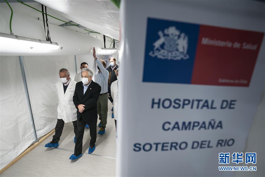 5月24日,智利总统皮涅拉(前右)视察首都大区新落成的首个专门收治新冠患者的方舱医院。 智利总统皮涅拉24日视察了首都大区新落成的首个专门收治新冠患者的方舱医院。智利拟搭建5个类似的方舱医院,总共可提供床位500张。 新华社发(智利总统府供图)