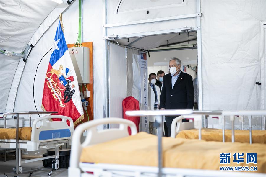 5月24日,智利总统皮涅拉视察首都大区新落成的首个专门收治新冠患者的方舱医院。 智利总统皮涅拉24日视察了首都大区新落成的首个专门收治新冠患者的方舱医院。智利拟搭建5个类似的方舱医院,总共可提供床位500张。 新华社发(智利总统府供图)