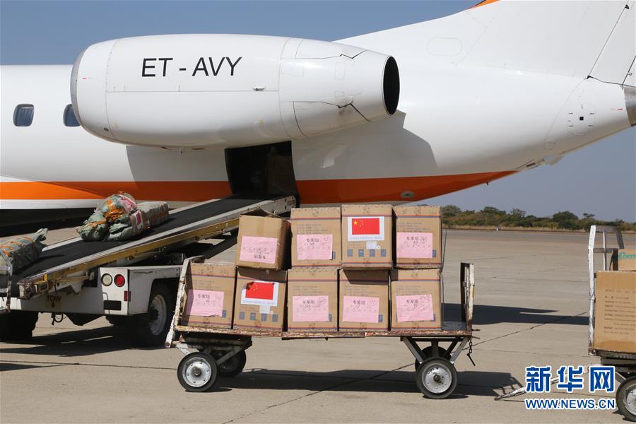 5月25日,在津巴布韦首都哈拉雷的罗伯特·穆加贝国际机场,中国抗疫医疗专家组成员携带的物资装载上飞机。 圆满完成在津巴布韦的工作任务后,中国抗疫医疗专家组25日下午搭乘赤道几内亚政府派出的包机离津赴赤,协助该国卫生部门开展抗击新冠疫情的工作。 新华社记者 张玉亮 摄