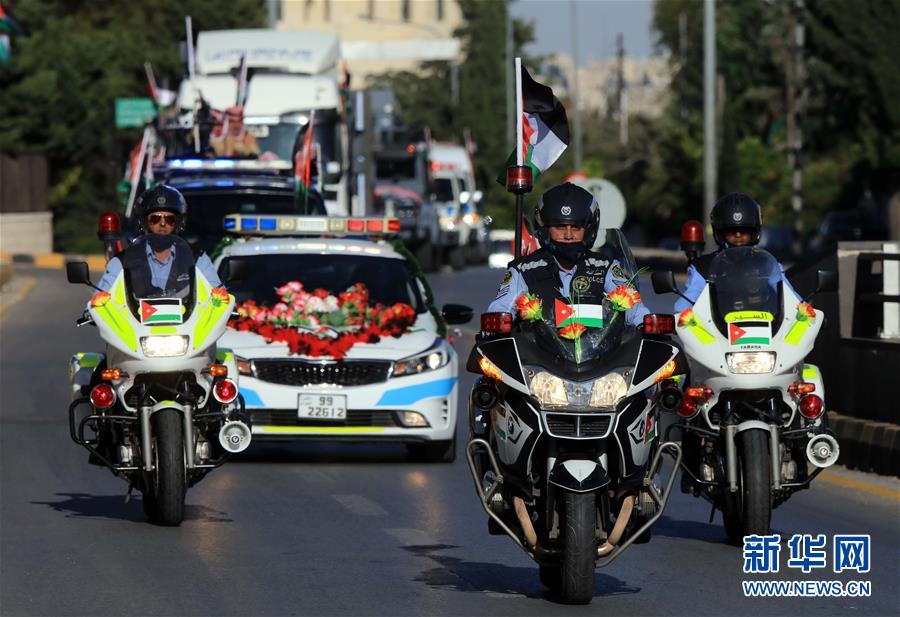 5月25日,在约旦首都安曼,警车巡游庆祝国家独立日。 约旦25日举办军车巡游、烟花秀等活动庆祝国家独立日。约政府表示,考虑到防疫需要,今年没有举办大型庆祝集会,尽量让民众在家中感受节日氛围。约旦于1946年5月25日宣布脱离英国获得独立,阿卜杜拉一世登基为王(埃米尔),国名为约旦哈希姆王国。 新华社发(穆罕默德·阿布·古什摄)