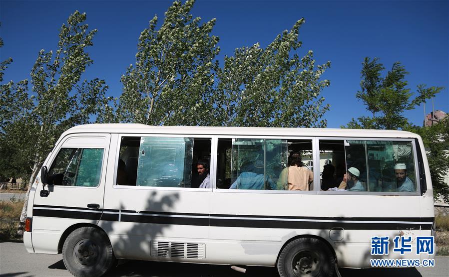 5月26日,被释放的塔利班在押人员乘车离开位于阿富汗东部帕尔万省的巴格拉姆监狱。新华社发(拉赫马图拉·阿里扎达摄)