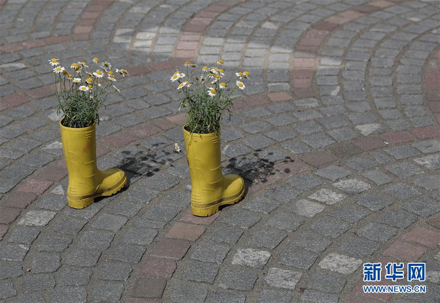 5月27日,在斯洛文尼亚首都卢布尔雅那,一家商店门口摆放的雨靴内放着鲜花。 自5月18日斯洛文尼亚继续大幅放松管控措施以来,首都卢布尔雅那日常生活逐渐恢复,户外休闲和购物的人增多。 新华社记者 彭立军 摄