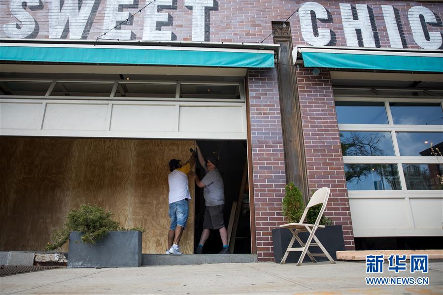 5月29日,在美国纽约,工人为一家餐厅制作外卖窗口。 美国纽约州州长安德鲁·科莫29日宣布,纽约市有望6月8日进入解封第一阶段,纽约州另外5个地区将进入第二阶段。 新华社发(郭克 摄)