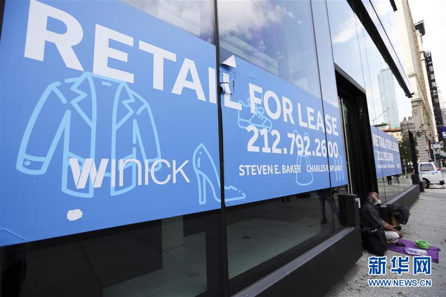 5月29日,美国纽约一家商铺窗户上贴着招租的广告。 美国纽约州州长安德鲁·科莫29日宣布,纽约市有望6月8日进入解封第一阶段,纽约州另外5个地区将进入第二阶段。 新华社记者 王迎 摄