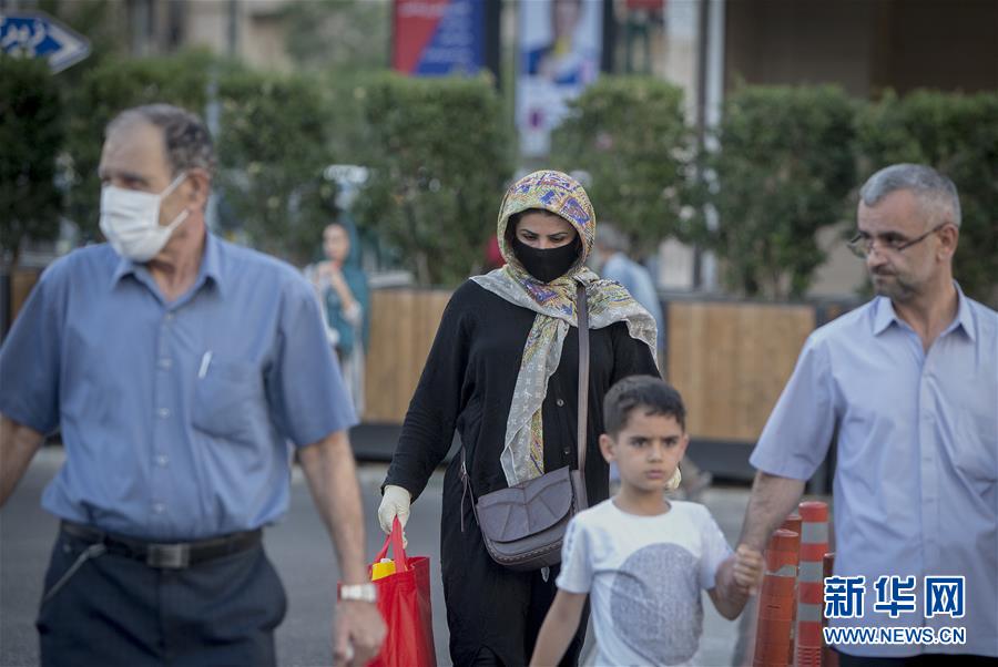 5月30日,戴口罩的行人穿过伊朗德黑兰的街道。 新华社发(艾哈迈德·哈拉比萨斯摄)