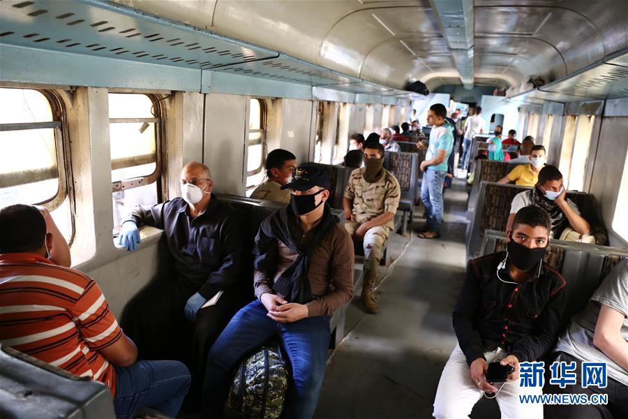 5月31日,在埃及首都开罗,人们戴口罩乘火车。 埃及卫生部31日晚说,埃及境内新增新冠确诊病例1536例,累计确诊24985例;新增死亡病例46例,累计死亡959例。 新华社发(艾哈迈德·戈马摄)