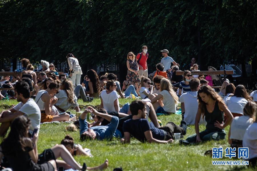 5月31日,人们在法国巴黎孚日广场的绿地上享受阳光。 法国政府网站5月31日公布的数据显示,法国新增新冠确诊病例257例,累计确诊151753例。法国全国的公园、绿地自周末起重新开放。 新华社发(奥雷利安·莫里萨尔摄)