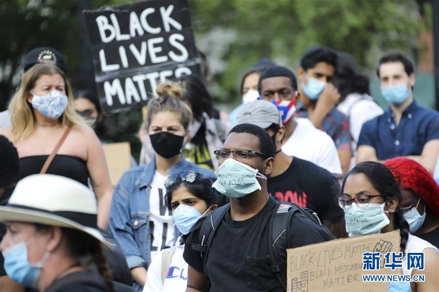 5月31日,在美国纽约联合广场,人们抗议警察暴力执法。 由美国明尼苏达州白人警察执法致非洲裔男子死亡事件引发的抗议和骚乱5月31日仍在美国多地持续。在纽约市,抗议活动已持续4天。 新华社记者 王迎 摄