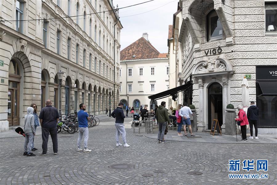5月31日,在斯洛文尼亚首都卢布尔雅那,人们排队购买冰淇淋。 自5月18日斯洛文尼亚继续大幅放松管控措施以来,首都卢布尔雅那日常生活逐渐恢复。 新华社记者 彭立军 摄