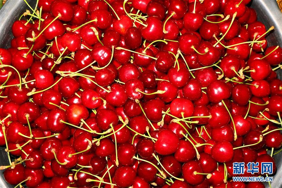 这是5月31日在乌兹别克斯坦塔什干州拍摄的果农采摘的樱桃。新华社发(扎法尔摄)