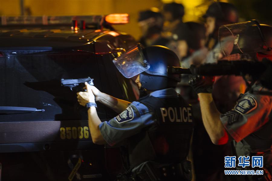 5月31日,在美国明尼苏达州明尼阿波利斯市,一名警察举起手枪。 新华社发(安格斯·亚历山大摄)