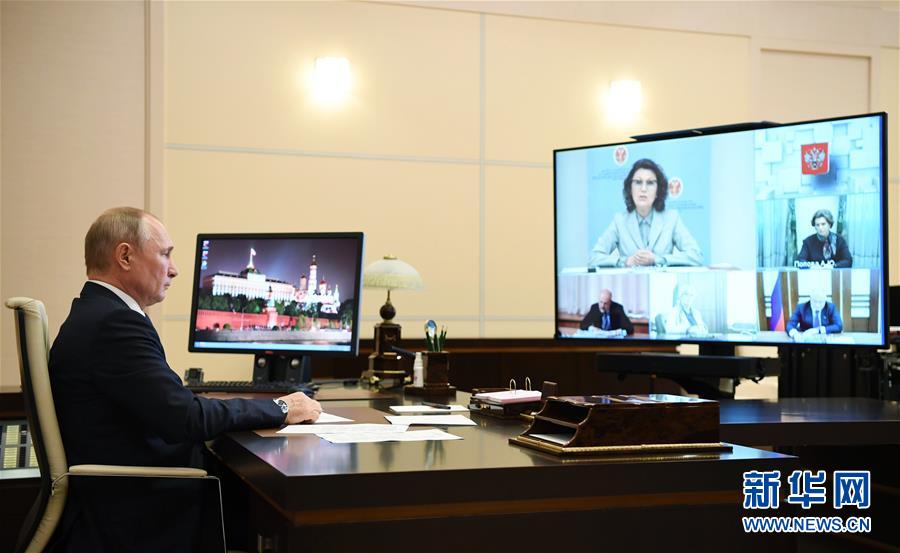 6月1日,在位于俄罗斯莫斯科州的新奥加廖沃总统官邸,俄总统普京与中央选举委员会领导层和宪法修正案起草工作组成员举行工作会议。 新华社/卫星社