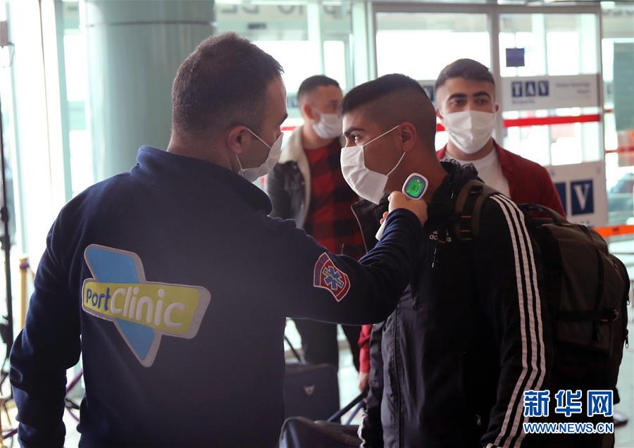 6月1日,在土耳其安卡拉的埃森博阿机场,一名乘客接受体温检测。当日,土耳其恢复部分国内航班。 新华社发(穆斯塔法·卡亚摄)
