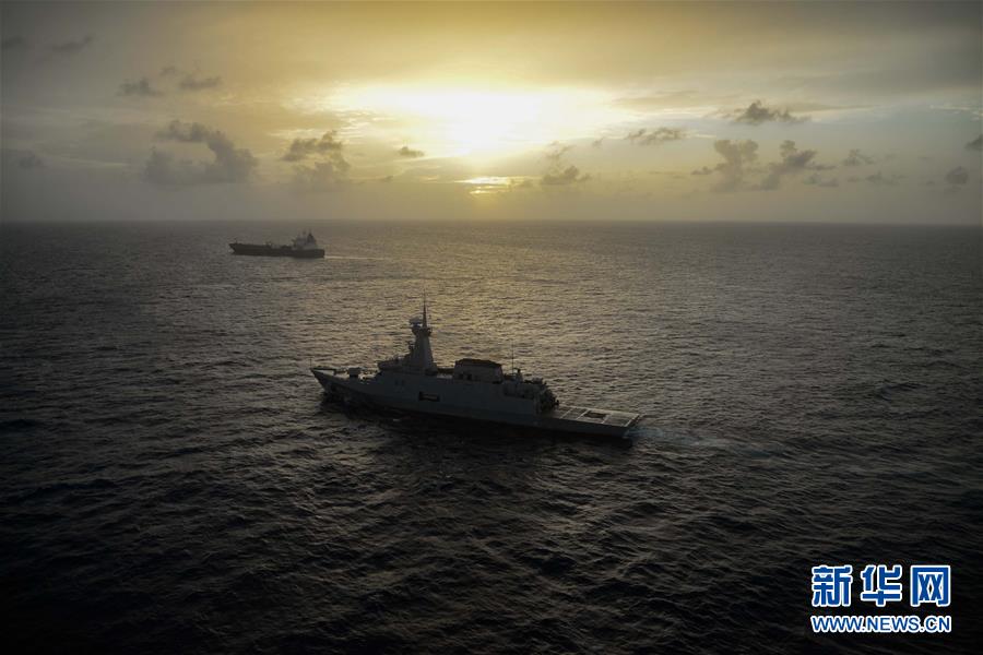 5月31日,在大西洋公海海域,委内瑞拉海军舰船(前)跟随伊朗油轮“克拉维尔”号(后)行驶。 悬挂伊朗国旗的 “克拉维尔”号油轮6月1日驶入委内瑞拉领海。至此,伊朗派出的五艘油轮全部顺利抵委。 新华社发(萨尔加多摄)