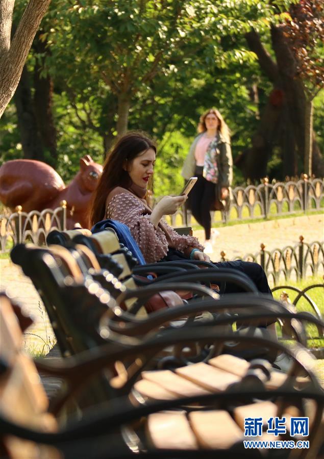 6月1日,一名女子坐在土耳其伊斯坦布尔的一个公园长凳上。 土耳其从6月1日起允许餐馆、咖啡馆、公园、海滩和健身房重新开放,日托中心、幼儿园、图书馆和博物馆也从同日开始恢复运营。 新华社记者 徐速绘 摄