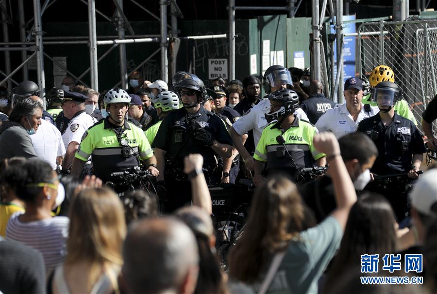 6月3日,警察在美国纽约街头警戒。 新华社记者 王迎 摄