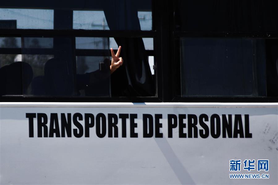 6月3日,在墨西哥奇瓦瓦州的一家工厂内,一名工人准备乘通勤车前往工作岗位。 墨西哥政府5月13日宣布“新常态计划”,从5月18日起,在确保安全的前提下,分三阶段陆续开展各领域复工复产。 新华社发(戴维·佩纳多 摄)